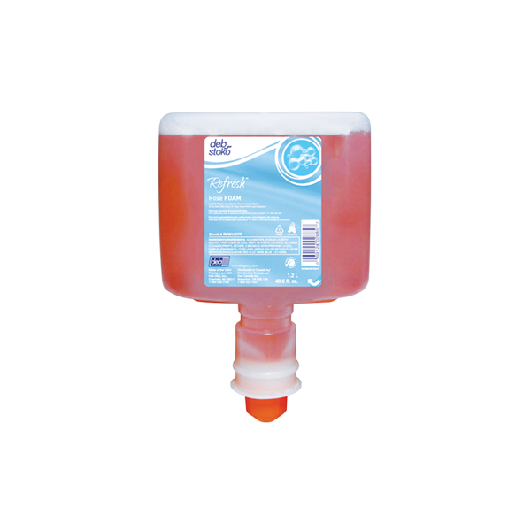 A Green Seal Certified, Rose scented foaming hand soap, containing skin conditioner that is biodegradable, with mild surfacants that meet DECO guidelines