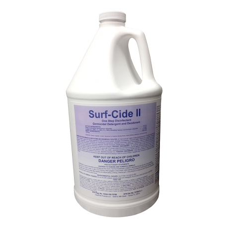 A One-Step area Disinfectant & Germicidal Detergent, SurfCide is super-concentrated and capable of tmaking up to 128 gallons of ready-to-use disinfectant.