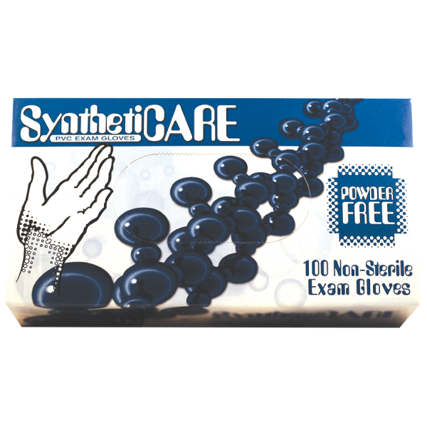 Syntheticare powder-free vinyl exam gloves are ideal for any type of medical or general use. The non-latex formula makes these gloves ideal for those who may be allergic to latex. Manufactured to ASTM and FDA standards as a medical device, these soft vinyl gloves are comfortable and have beaded cuff for extra strength and tear resistance.