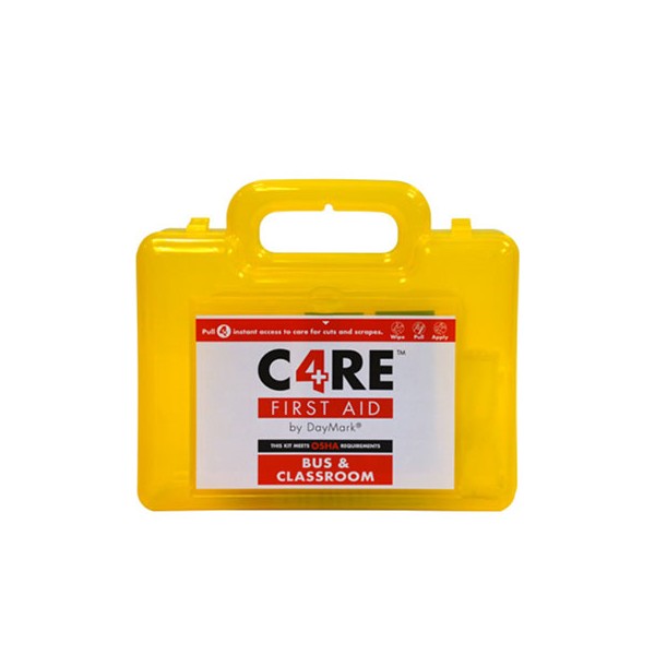 An OSHA-compliant kit that features 58 items for cuts, scrapes, and more severe injuries common on buses and in classrooms. The easily mountable kit has a unique set of compartments in the door for quick access to care items.