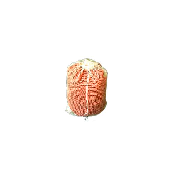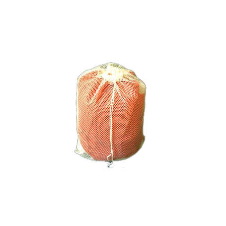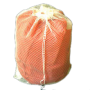 White mesh laundry bag for easy storage and transport of large laundry loads.