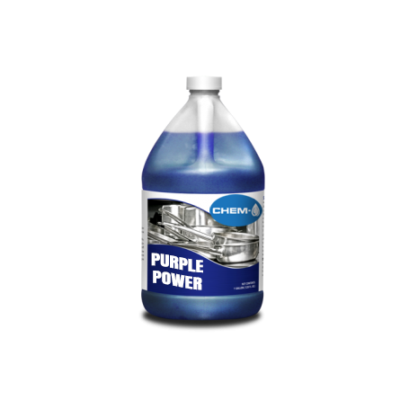 A heavy duty low dilution multi-use hard surface cleaner. This product cleans and polishes glass, chrome, ceramics, stainless steel, plastic, and removes heavy duty soil with maximum efficiency. Thin purple liquid. Mild chemical fragrance.
