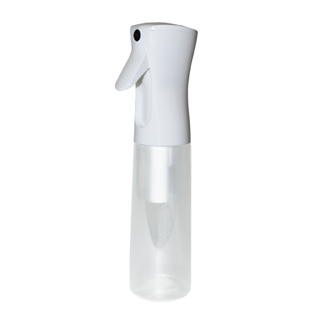 Provides a 10 oz. refillable bottle with a patented design head that allows the user to spray almost any liquid into a fine, aerosol-like mist pattern. Pulling the trigger causes a continuous spray that lasts approximately 1 second and releases 1.25 mL of liquid. Ideal for glass cleaning, sanitizing, and any other product that you wish to dispense into a fine mist.